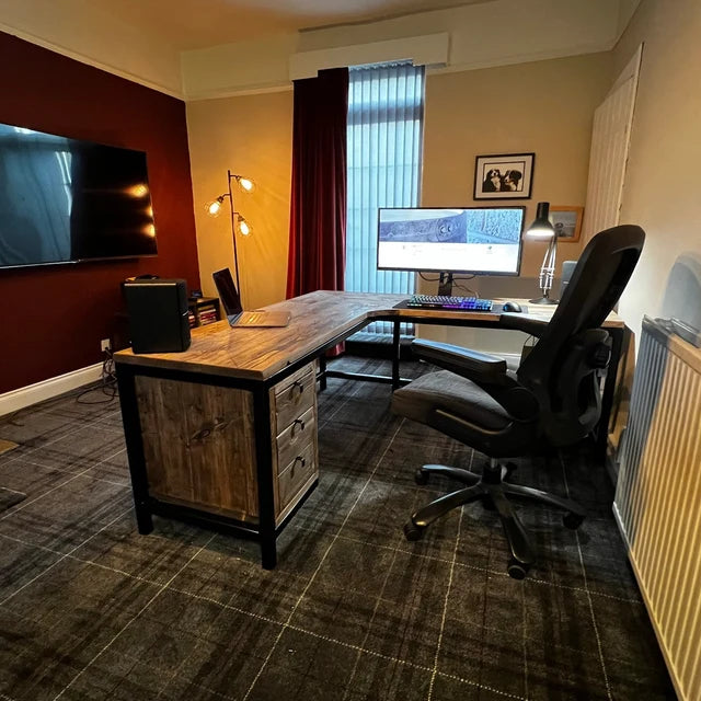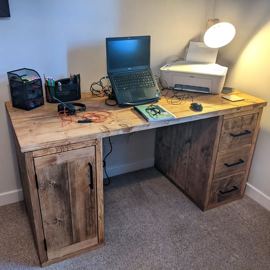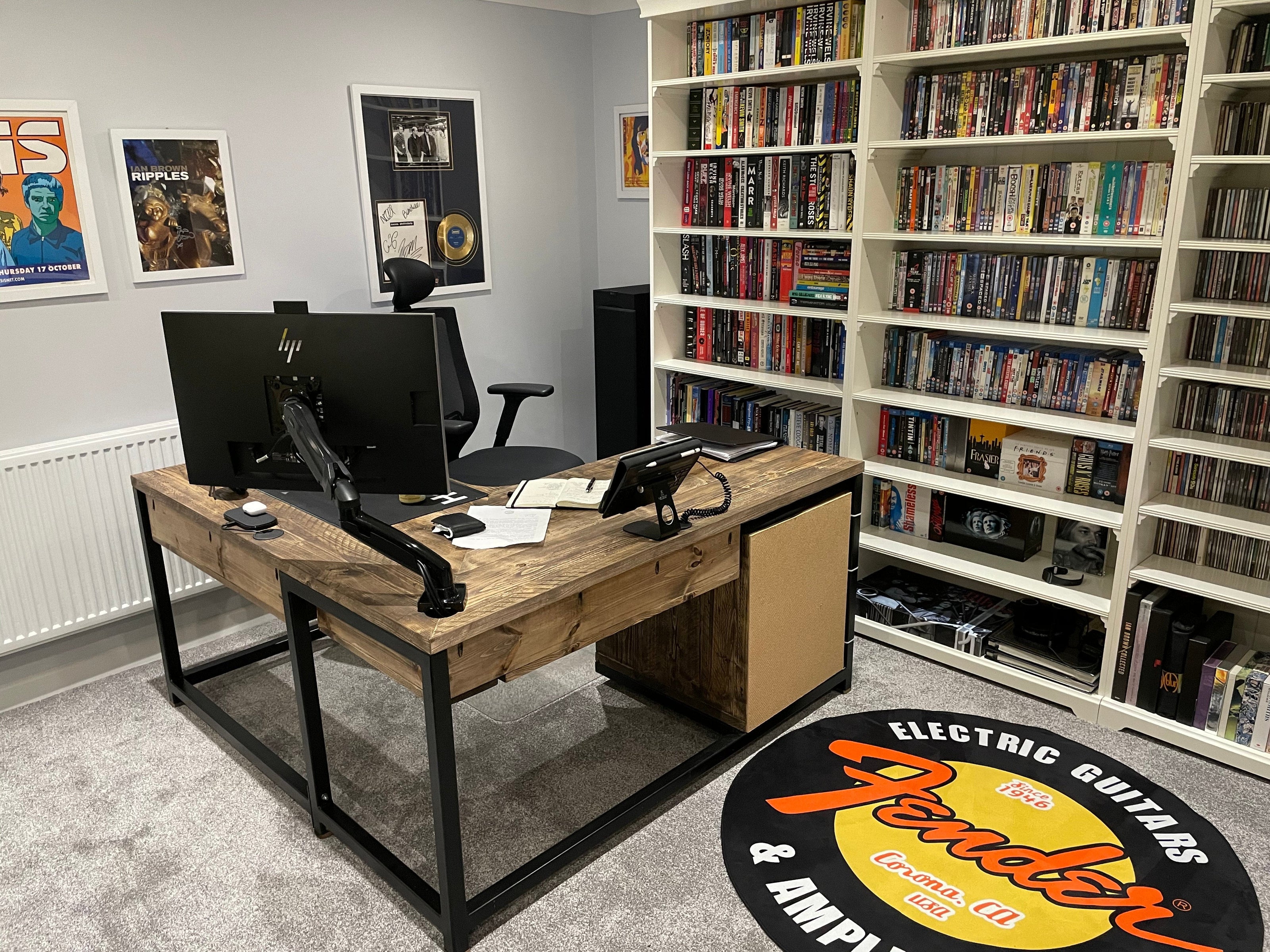 "Like many people at the moment I'm working from home so wanted a desk I could not just work from everyday but was also something I would really appreciate. The desk Paul made for me is fantastic and worth every penny. It's so well built with a great finish. Plus, thanks to various conversations with Paul to create a bespoke design it's exactly what I needed with drawers, cable management, a PC shelf and another floating shelf. Communication was easy and Paul couldn't have been more helpful. Delivery service from Allan was also great, letting me know when he was going to arrive and helping me get it where I needed. Highly recommended"