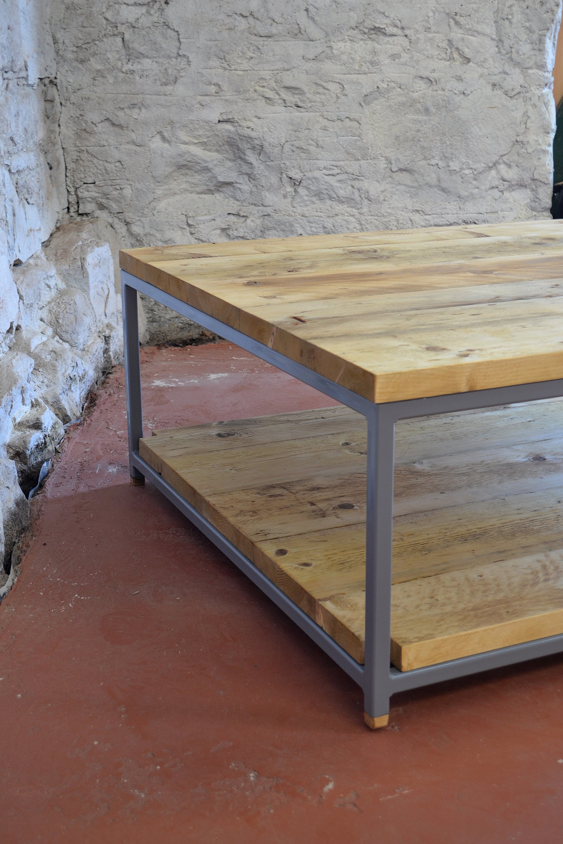 Handmade Industrial Coffee Table – Reclaimed Wood & Steel Frame with Shelf